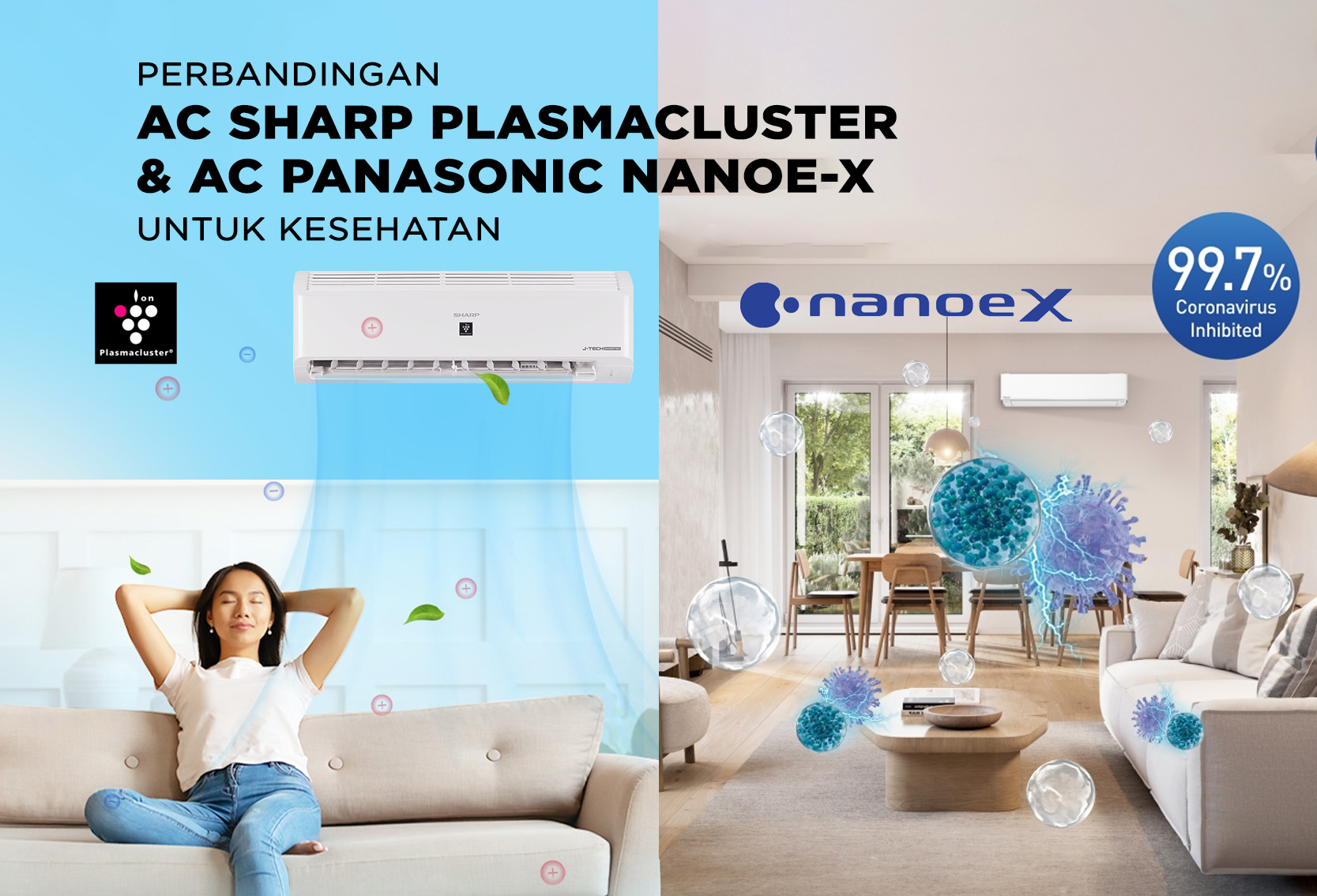 | Aspek | Plasmacluster (Sharp) | Nanoe X (Panasonic) |
